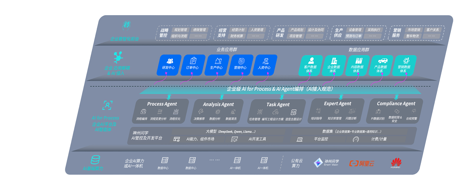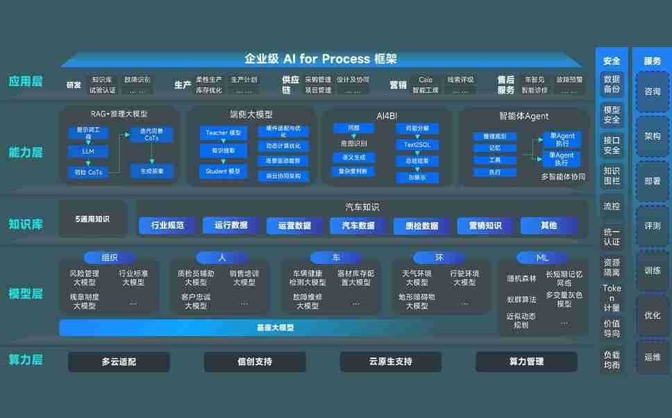 端到端的一站式AI工作空间深度融合了从企业战略规划到日常经营的全流程业务板块,,,,定向解决车企内部领域多、、部门多、、、链条长、、场景碎片化等难题,,,,支持车企快速构建以AI为核心的生产力写作体系,,实现任务执行与AI能力的无缝集成与交互
