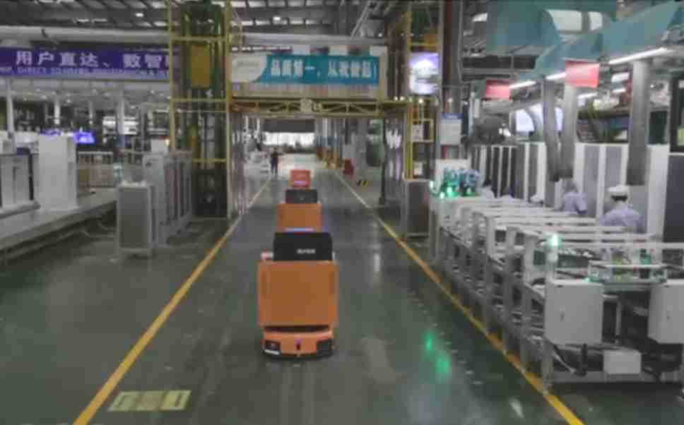 为车载冰箱物流配送打造的智能解决方案,,包含产中物流通过潜伏举升AMR搬运至线边,,,产后成品物流智能仓储,,,,流程包含产中物流智能齐套入库,,,线边安灯叫料AMR智能配送至线边,,成品入库、、、、出库,,,通过无人堆高车机器人,,智能仓储管理替代人工作业管理,,,实现更高存储、、更高效率、、、、更具柔性化的解决方案。。。